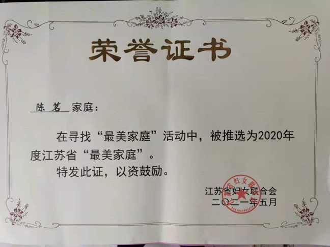 近日,2020年度江蘇省“最美家庭”揭曉,城控集團(tuán)下屬市政管網(wǎng)公司陳茗家庭喜獲江蘇省“最美家庭”榮譽(yù)稱號(hào)。