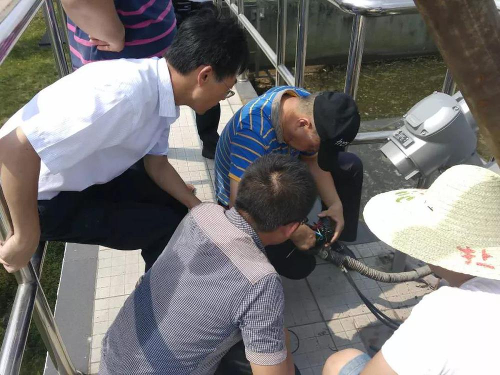 6月23日下午3時(shí)許,在湯汪污水廠生物池檢修平臺(tái)上,蔣宏根帶領(lǐng)著2名組員正緊張地工作著。高溫籠罩,熱浪滾滾。歷經(jīng)近1個(gè)小時(shí)的維修,撇水器的故障已基本排除。組員們都躲到陰涼處休息了,但是班長(zhǎng)蔣宏根仍然頂著烈日,驗(yàn)收每道維修工序,復(fù)查每個(gè)測(cè)試節(jié)點(diǎn)。他隨身帶著一塊抹布,卻不是為了擦拭臉上的汗珠,等到設(shè)備完全恢復(fù)工作,他習(xí)慣性地把維修設(shè)備上的灰塵和油垢擦干凈,從口袋里掏出礦泉水一飲而盡,“終于解決問(wèn)題,該去下一個(gè)報(bào)修點(diǎn)了”。
