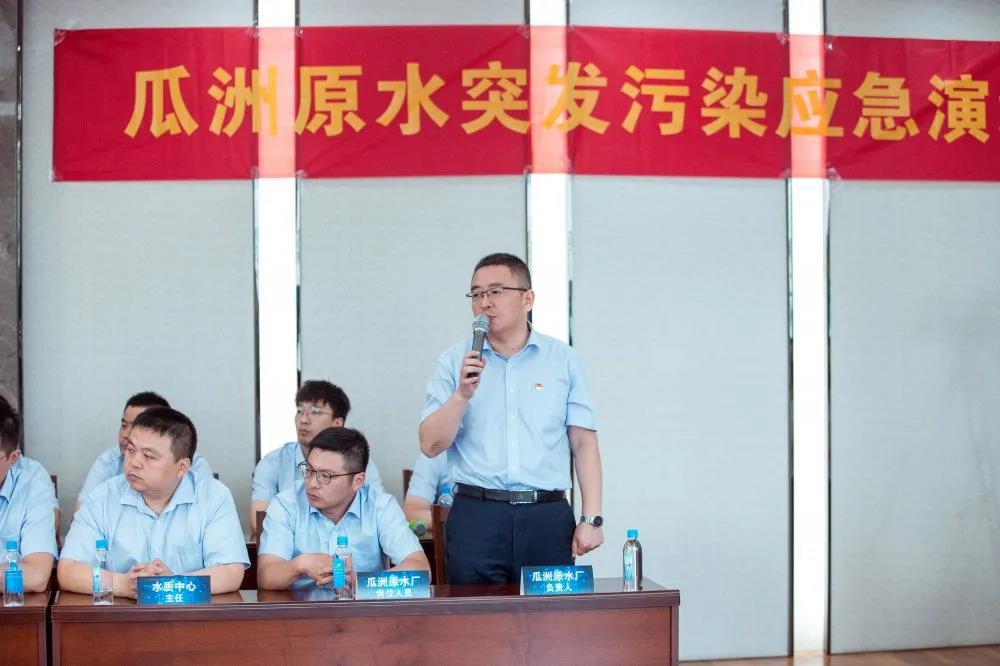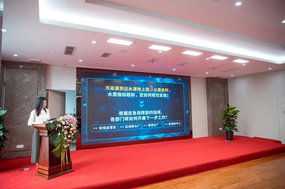 推演模擬長江瓜洲段上游突發(fā)沉船事件可能導致的水體油污污染,以VCR推送場景+桌面推演的方式進行。原水污染突發(fā)情況發(fā)生后,在應急指揮部的指揮下,供水調(diào)度中心如何進行調(diào)度?水質(zhì)檢測中心如何監(jiān)測水質(zhì)?涉及到的水廠具體應如何操作?各職能部門如何執(zhí)行應急預案?根據(jù)演練主持人提出的問題和VCR推送出的不同場景,各部門有關(guān)負責人和崗位操作人員一一回答處置方法和處置流程,經(jīng)過有效處置,水源突發(fā)污染隱患和相關(guān)危險因素已成功消除,“緊急狀態(tài)”解除后,各水廠恢復正常生產(chǎn)。參演人員協(xié)作分工,有效配合,出色完成了推演處置任務。