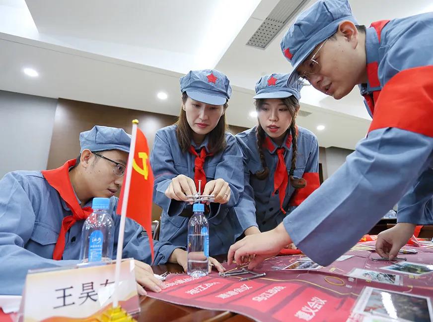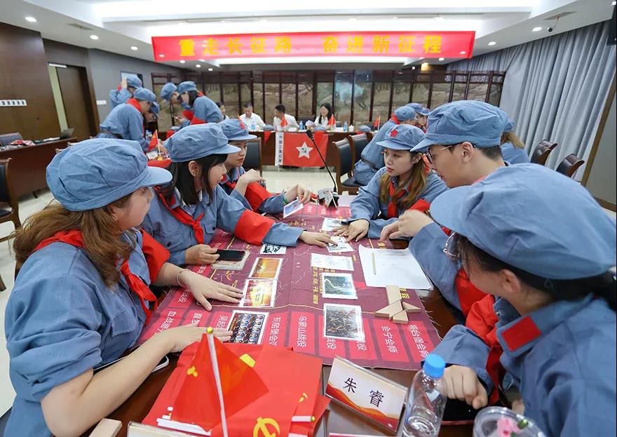 課程以講授、影片片段觀摩、模擬推演、小組討論、互動演示等形式,從歷史時間、戰(zhàn)役模擬、精神提煉、思想踐行等方面展開學(xué)習(xí)?;顒蝇F(xiàn)場,每位學(xué)員都深入其中,仿佛置身于那個戰(zhàn)火紛飛的年代,真實(shí)演繹了“面臨敵軍圍追堵截”“經(jīng)歷湘江血戰(zhàn)”“召開遵義會議”“上演飛奪瀘定橋”等重要事件,進(jìn)一步領(lǐng)悟了革命先輩堅(jiān)定信仰、不怕犧牲,勇往直前、堅(jiān)忍不拔,眾志成城、百折不撓的偉大長征精神。