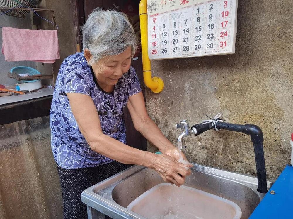 7月19日上午,家住廣陵區(qū)汶河街道旌忠寺社區(qū)的83歲獨(dú)居老人張恒英喜笑顏開,一邊打開水龍頭打水洗臉,一邊豎起大拇指,稱贊社區(qū)為她解決了一個(gè)大難題。