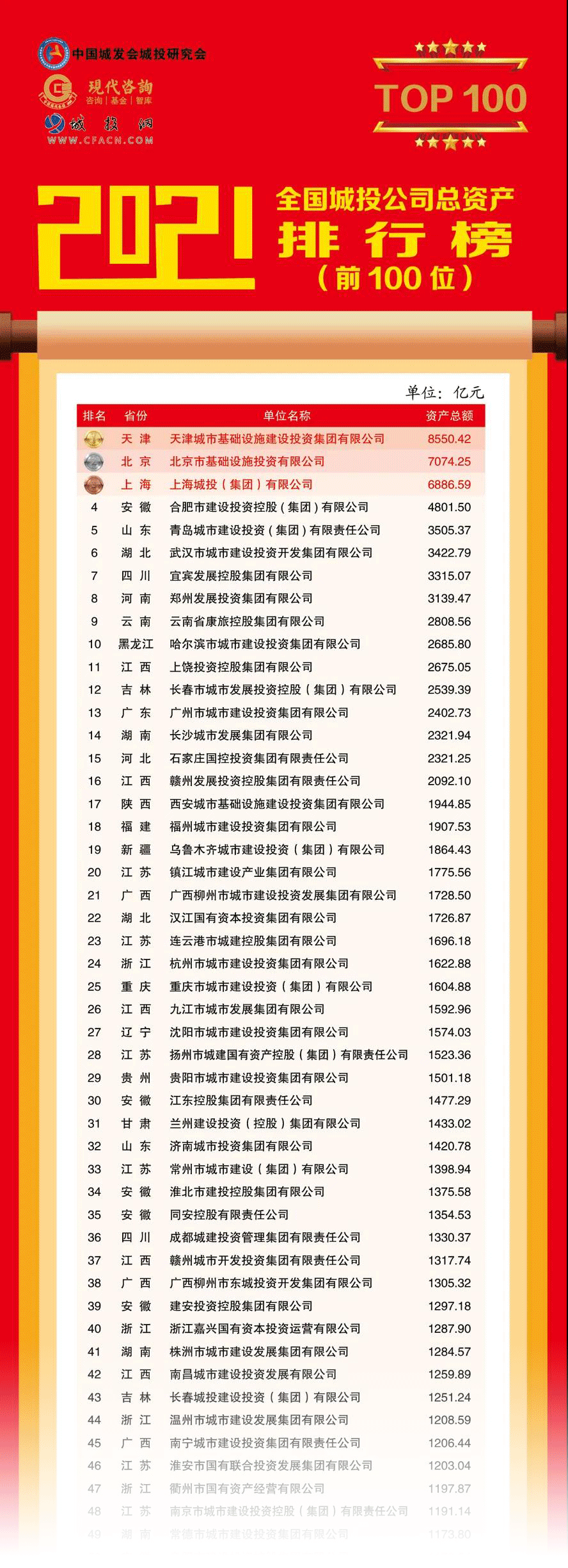該排行榜由中國(guó)城市發(fā)展研究會(huì)城市建設(shè)投融資研究專(zhuān)業(yè)委員會(huì)(簡(jiǎn)稱(chēng)”中國(guó)城發(fā)會(huì)城投研究會(huì)”)、江蘇現(xiàn)代資產(chǎn)投資管理顧問(wèn)有限公司(簡(jiǎn)稱(chēng)“現(xiàn)代咨詢(xún)”)和城投網(wǎng)聯(lián)合發(fā)布,迄今已連續(xù)發(fā)布8年,主要反映全國(guó)城投公司規(guī)模變化的總資產(chǎn)排名情況,目前已成為全國(guó)城投行業(yè)群體發(fā)展?fàn)顩r和城投轉(zhuǎn)型升級(jí)的權(quán)威發(fā)布。