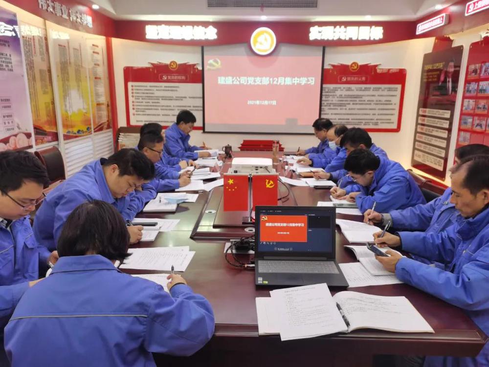 12月17日下午,建盛公司黨支部開展集中學習。公司領導班子成員、全體黨員、中層干部及入黨積極分子參加學習。