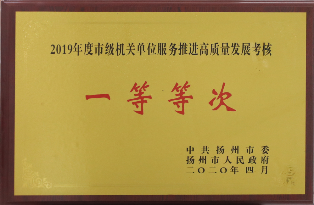 2019年度市級(jí)機(jī)關(guān)單位服務(wù)推進(jìn)高質(zhì)量發(fā)展考核一等等次