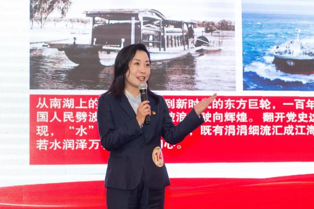 其中,主講人林啟迪用激昂的語言和真摯的情感,通過講述自己親人在抗美援朝戰(zhàn)爭(zhēng)中壯烈犧牲的英勇故事以及言傳身教給孩子播撒紅色信仰的種子,賡續(xù)紅色精神血脈的故事,講述了黨員的信仰信念與忠誠擔(dān)當(dāng),帶來深具感染力的黨課;主講人仇偉結(jié)合長江水務(wù)的歷史,在“小切口”中展現(xiàn)水務(wù)人愛黨、愛國、愛業(yè)的熾熱情懷和斗志昂揚(yáng)、奮發(fā)向上的精神風(fēng)貌的“大主題”,用慷慨激昂、聲情并茂的宣講了建黨百年風(fēng)華。