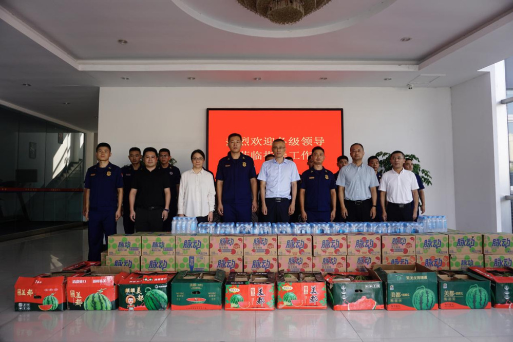 8月1日下午,揚(yáng)州公用控股集團(tuán)有限公司領(lǐng)導(dǎo)班子一行,前往邗江區(qū)新盛消防中隊(duì),慰問高溫奮斗在應(yīng)急搶險(xiǎn)救援一線的消防隊(duì)員們,為他們送去消暑用品。