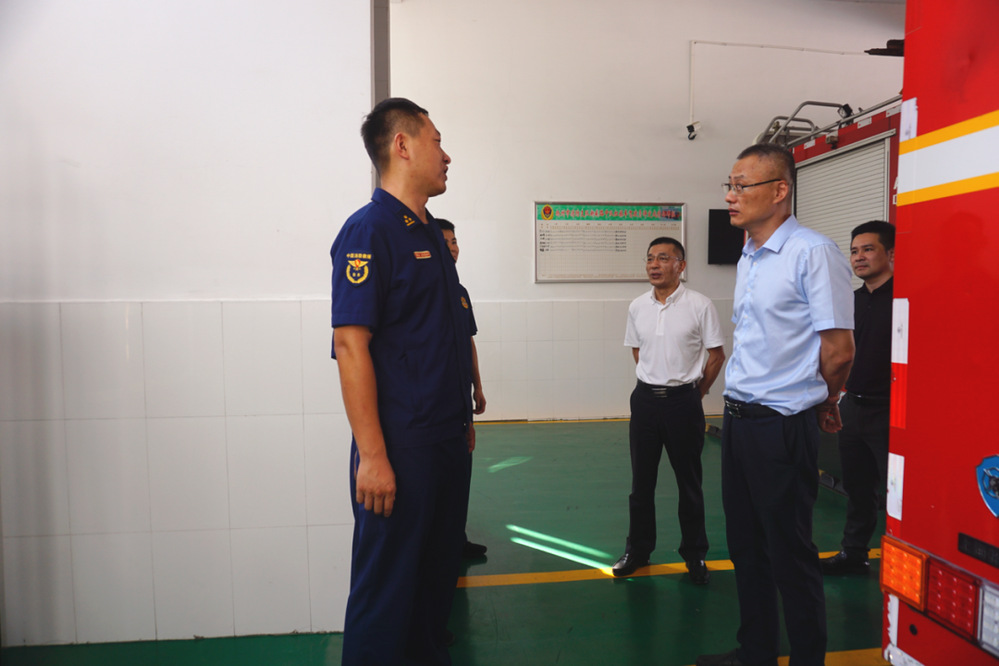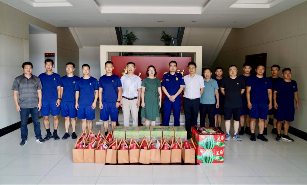 公司一行親切地慰問了消防隊(duì)員,參觀了消防隊(duì)員的訓(xùn)練場地,了解隊(duì)員們的日常訓(xùn)練及消防設(shè)施設(shè)備等運(yùn)行情況,認(rèn)真學(xué)習(xí)了在事故預(yù)防、隱患排查、搶險(xiǎn)救援等方面的優(yōu)良經(jīng)驗(yàn)。消防隊(duì)員感謝大家對消防救援工作的關(guān)心和支持。保護(hù)人民群眾生命財(cái)產(chǎn)安全是消防救援隊(duì)伍的神圣職責(zé),他們一定不負(fù)人民重托,戰(zhàn)高溫、斗酷暑,始終奮戰(zhàn)在搶險(xiǎn)救援第一線,為群眾安居樂業(yè)保駕護(hù)航。