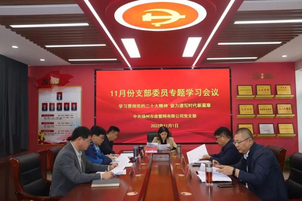 11月1日下午,揚州市政管網(wǎng)公司黨支部召開11月支部委員專題學習會,認真?zhèn)鬟_學習黨的二十大精神,并對企業(yè)學習宣傳貫徹黨的二十大精神作出安排部署。