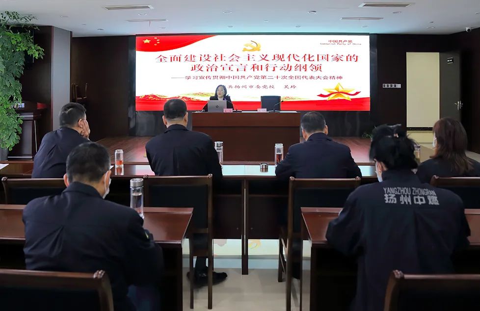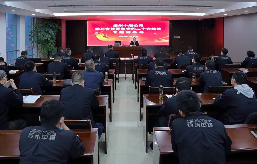 為深入學(xué)習(xí)宣傳貫徹黨的二十大精神,把揚(yáng)州中燃公司廣大黨員、干部員工的思想統(tǒng)一到黨的二十大精神上來,把力量凝聚到推動揚(yáng)州中燃公司轉(zhuǎn)型跨越發(fā)展的方向上來,2022年11月22日下午,揚(yáng)州中燃公司黨委組織開展學(xué)習(xí)宣傳貫徹黨的二十大精神專題輔導(dǎo)會。會議傳達(dá)學(xué)習(xí)了《中共中央關(guān)于認(rèn)真學(xué)習(xí)宣傳貫徹黨的二十大精神的決定》,對全公司學(xué)習(xí)宣貫黨的二十大精神進(jìn)行動員部署,邀請市委黨校吳玲老師宣講黨的二十大精神。公司領(lǐng)導(dǎo)班子成員,全體中層干部參加會議。