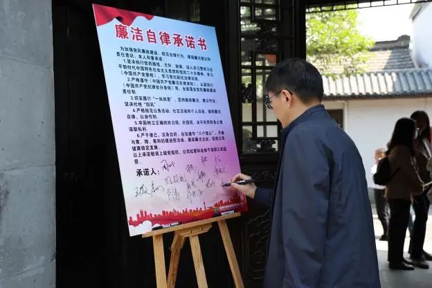在斗野亭的長廊,大家分享了廉政書籍,互贈(zèng)了“廉”花,進(jìn)行了廉政交流,簽署了廉潔自律承諾書。大家紛紛表示:“在今后的工作生活中,要一身正氣、堅(jiān)守本心;要頭頂理想、胸懷信仰;要主動(dòng)擔(dān)當(dāng)、知行合一?!?/p>