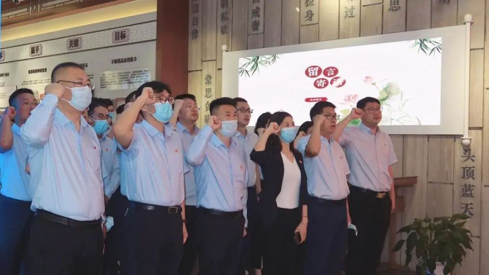 跟隨講解員的引導,全體黨員干部有序參觀了專題展廳,集中觀看了警示教育片,通過違紀違法典型案例警示教育全體黨員干部知敬畏、存戒懼、守底線,增強“四個意識”,堅定“四個自信”,做到“兩個維護”,進一步強化紀律規(guī)矩意識,筑牢防腐根基;活動最后,全體黨員干部重溫了入黨誓詞,以鏗鏘堅定的聲音再次作出莊嚴承諾,牢記初心使命。