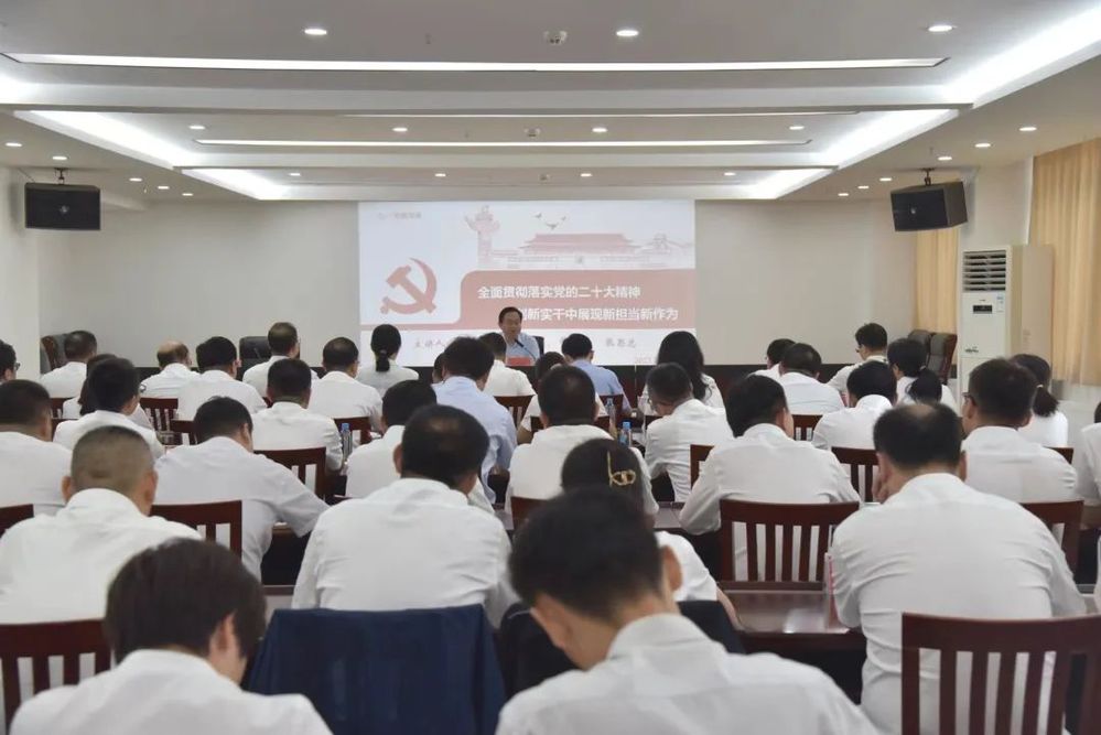 張思忠以《全面貫徹黨的二十大精神 在創(chuàng)新實(shí)干中展現(xiàn)新?lián)?dāng)新作為》為題,從“為何黨員干部必須要有擔(dān)當(dāng)、衡量黨員干部敢于擔(dān)當(dāng)?shù)臉?biāo)準(zhǔn)、用實(shí)際行動(dòng)詮釋‘擔(dān)當(dāng)’”三個(gè)方面進(jìn)行了闡述,他結(jié)合長(zhǎng)江水務(wù)實(shí)際,既分析了問題,又提出了要求,為長(zhǎng)江水務(wù)下一步發(fā)展指明了方向。