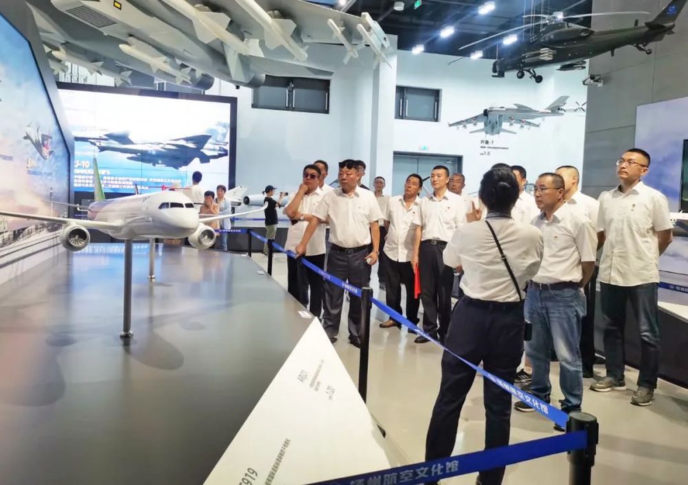 揚(yáng)州航空館由航空科技文化館與航空科幻體驗(yàn)館兩大場(chǎng)館組成,通過模型圖片、全息投影、視頻影像、多維體驗(yàn)設(shè)備等方式,綜合展示中國(guó)航空業(yè)發(fā)展的歷史全貌和發(fā)展成就,是一座國(guó)防教育示范基地、愛國(guó)主義教育基地。在講解員的帶領(lǐng)下,大家參觀了航空館展廳里的實(shí)物與模型,認(rèn)真觀看了中國(guó)空軍的宣傳短片和從無到有,由弱變強(qiáng)的發(fā)展歷程,聆聽了人民空軍英雄先烈們聽黨指揮、能打勝仗、奮發(fā)圖強(qiáng)、敢于亮劍的事跡。通過實(shí)地參觀大家無不動(dòng)容,深受教育啟發(fā)。
