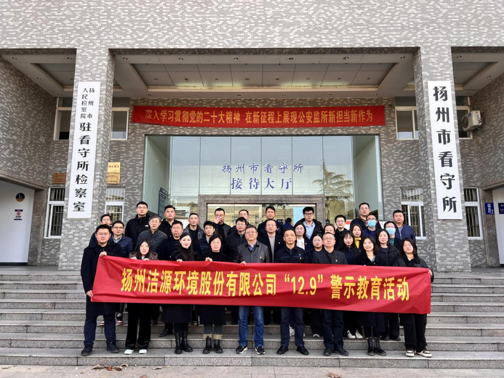 12月7日下午,揚(yáng)州潔源環(huán)境股份有限公司組織干部職工赴揚(yáng)州市看守所開展“12·9”黨風(fēng)廉政教育日活動。