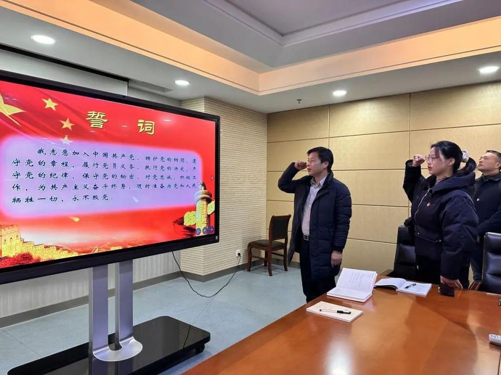 會(huì)議還討論了預(yù)備黨員轉(zhuǎn)正事宜。新黨員在支部書記的帶領(lǐng)下,面對(duì)黨旗,進(jìn)行入黨宣誓,全體黨員重溫了入黨誓詞。