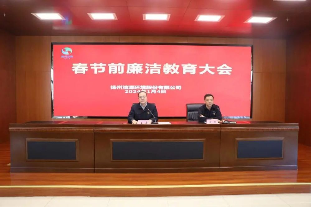 1月4日下午,潔源環(huán)境公司召開春節(jié)前廉潔教育大會,公司領(lǐng)導(dǎo)班子全體成員、全體中層干部及助理、重點崗位人員和供應(yīng)商代表參加會議。