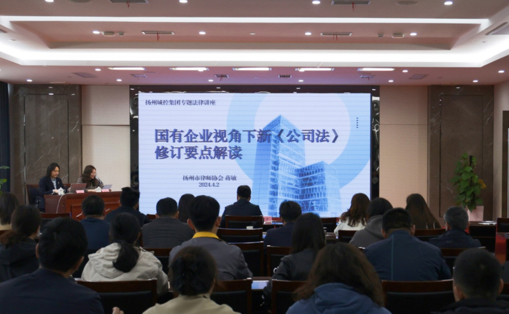 4月2日下午,城控集團(tuán)組織開(kāi)展新《公司法》專(zhuān)題法律講座,深入學(xué)習(xí)新《公司法》重大修訂內(nèi)容,推進(jìn)集團(tuán)依法治企與合規(guī)管理。活動(dòng)邀請(qǐng)揚(yáng)州市律師協(xié)會(huì)副會(huì)長(zhǎng)蔣敏授課,集團(tuán)副總經(jīng)理吳健出席活動(dòng)并講話,集團(tuán)法務(wù)部、各單位法務(wù)分管領(lǐng)導(dǎo)、職能部室負(fù)責(zé)人及法務(wù)專(zhuān)員近60人參加講座。