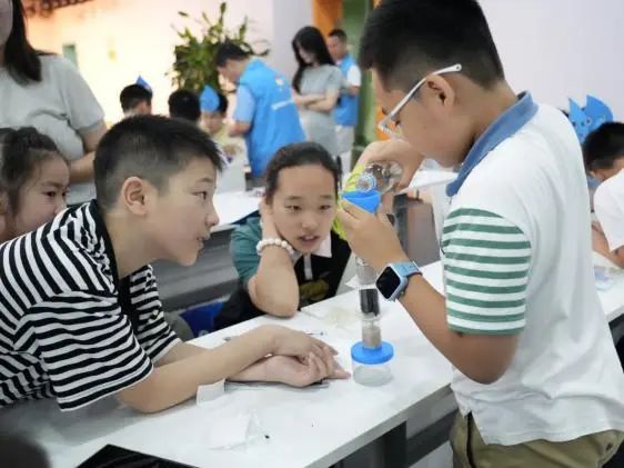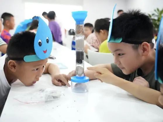 在工作人員的指導(dǎo)下,小朋友們還親自動手參與水的凈化等科學(xué)小實驗,體驗了水從渾濁到清澈的神奇轉(zhuǎn)變過程。