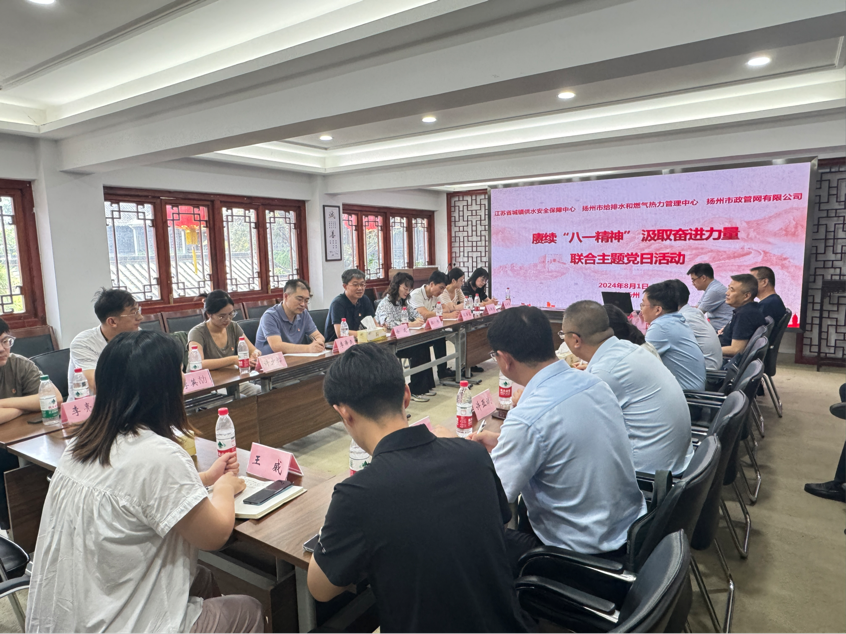 8月1日上午,江蘇省城鎮(zhèn)供水安全保障中心、揚(yáng)州市給排水和燃?xì)鉄崃芾碇行募皳P(yáng)州市政管網(wǎng)公司聯(lián)合開展“賡續(xù)‘八一精神’,汲取奮進(jìn)力量”主題黨日活動(dòng)。省城鎮(zhèn)供水安全保障中心主任徐建,市住建局四級(jí)調(diào)研員駱俊東,城控集團(tuán)黨委委員、副總經(jīng)理夏長(zhǎng)明,市給排水和燃?xì)鉄崃芾碇行?、管網(wǎng)公司主要負(fù)責(zé)人和相關(guān)人員參加活動(dòng)。