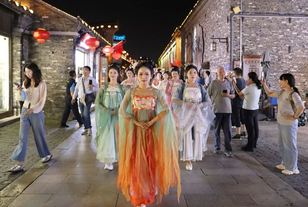 國慶假期,在享受美食的同時,越來越多的游客將以“漢服體驗”為代表的特色旅拍融入假期休閑,留下生活的美好瞬間。為滿足游客個性化需求,節(jié)日期間,“長樂旅拍”加派人手,分四組為游客提供一對一專業(yè)服務(wù)。游客換上漢服,怡然漫步于青磚黛瓦之間……船舫旁、含藻亭內(nèi)、街南十二景間,約1000余人在長樂客棧留下了美好回憶。