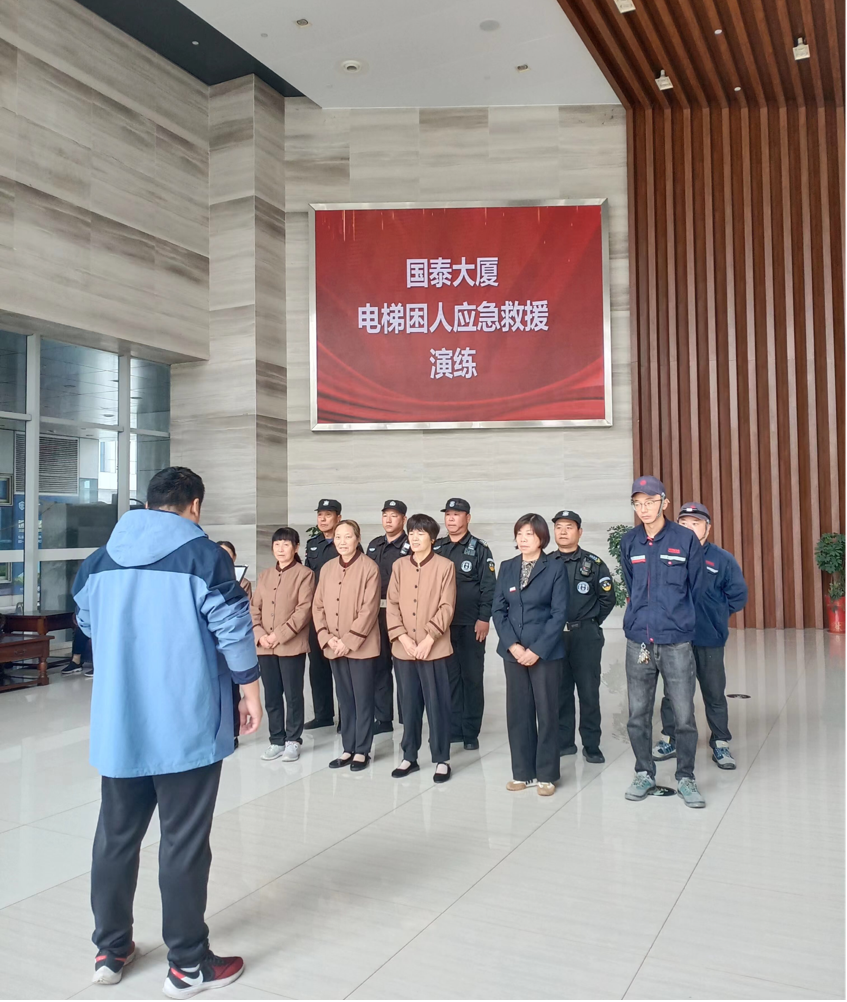 為進一步增強業(yè)主乘坐電梯的安全防范意識,提高突發(fā)事件的應變能力,同時為提高物業(yè)工作人員處置突發(fā)事件的應急能力,掌握突發(fā)事件的崗位職責和處理流程。10月11日上午,國泰大廈物業(yè)服務中心聯(lián)合電梯維保單位在國泰大廈2號樓開展電梯困人應急救援實戰(zhàn)演練。