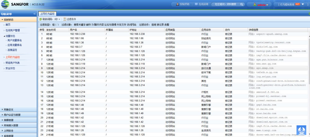 此次專項檢查重點圍繞網(wǎng)絡(luò)設(shè)備(防火墻、行為管理器、入侵檢測設(shè)備)、辦公電腦網(wǎng)絡(luò)行為、網(wǎng)絡(luò)安全拓?fù)浼軜?gòu)和各系統(tǒng)安全防護(hù)措施等方面進(jìn)行了深入檢查。檢查過程中,技術(shù)人員利用上網(wǎng)行為管理服務(wù)進(jìn)行上網(wǎng)行為監(jiān)控分析、應(yīng)用流量分析、用戶行為管控,對存在風(fēng)險的網(wǎng)絡(luò)行為進(jìn)行現(xiàn)場評估并實時整改,以實際行動守護(hù)公司網(wǎng)絡(luò)空間的安全與秩序。