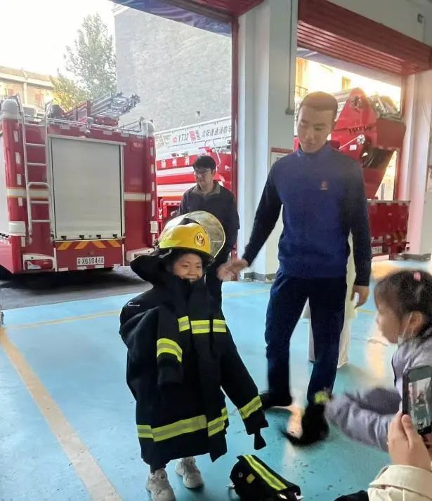 為了更具象化讓親子家庭了解各種消防器材設(shè)備,在消防隊(duì)員的帶領(lǐng)下,小朋友們親身體驗(yàn)穿戴防護(hù)服、觀摩消防車(chē)等環(huán)節(jié),了解部分救援器材在滅火和救援任務(wù)中的用途,孩子們感受到消防員們的英勇與付出,興奮之情溢于言表。
