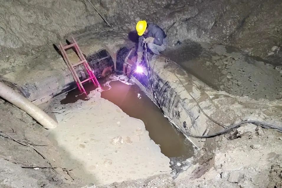 晚10時,隨著閥門的關(guān)閉、管道內(nèi)余水的排空,管道碰接正式開始,3個碰接點同時施工,施工人員全神貫注,施工現(xiàn)場燈火通明、機器轟鳴,一切有條不紊、井然有序……