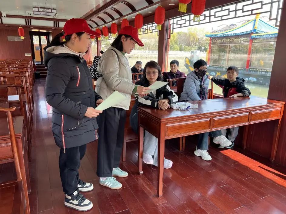 3月19日下午,志愿者們早早來到碼頭,登上游船向游客發(fā)放宣傳資料,詳細介紹“世界水日”的由來、意義和節(jié)約用水的重要性,呼吁大家關(guān)注水資源保護。同時,志愿者們深入講解了古運河的歷史文化,讓游客們在欣賞美景的同時,感受到古運河的獨特魅力。志愿者們還手持垃圾鉗、垃圾袋,沿著河岸,仔細清理河面上的漂浮物和岸邊的垃圾,他們的行動不僅美化了河道環(huán)境,也為周邊居民樹立了榜樣。