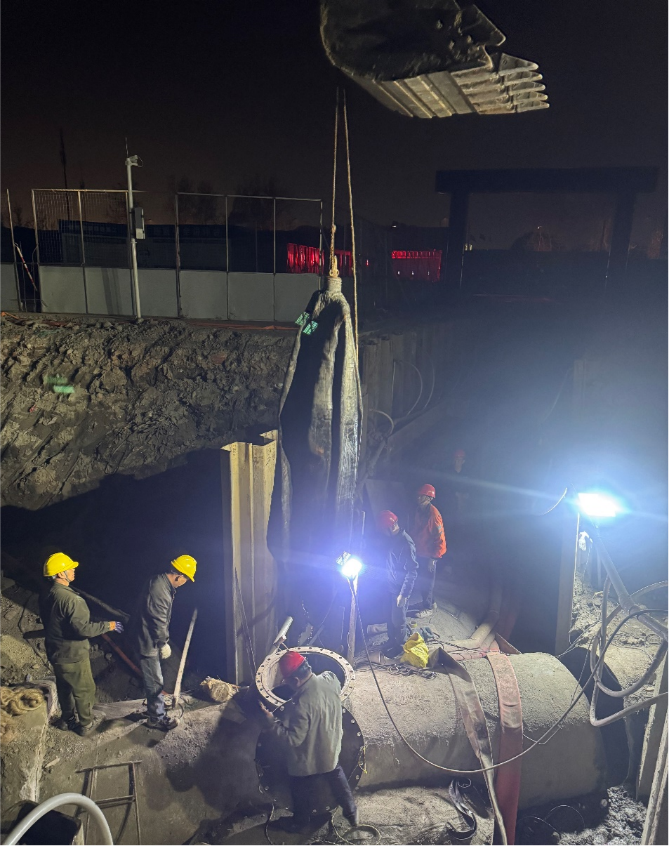 作為保障汛期排水系統(tǒng)穩(wěn)定的核心環(huán)節(jié),施工需在不停產(chǎn)、不影響污水處理的前提下完成導(dǎo)流切換,同時(shí)涉及高水位作業(yè)、夜間施工及生態(tài)保護(hù)等要求。在此情況下,公司高度重視,聯(lián)合設(shè)計(jì)單位、上善公司及市政管網(wǎng)公司成立專(zhuān)項(xiàng)工作組,召開(kāi)多輪技術(shù)論證會(huì),創(chuàng)新制定了“分段導(dǎo)流+動(dòng)態(tài)調(diào)控+雙保險(xiǎn)封堵”的施工方案,并調(diào)集精銳施工力量,提前部署應(yīng)急物資,組織專(zhuān)業(yè)潛水團(tuán)隊(duì),實(shí)施對(duì)管道流量、水質(zhì)及周邊環(huán)境進(jìn)行無(wú)間斷監(jiān)控,以“分鐘”為單位倒排工期,確保施工全程安全可控。