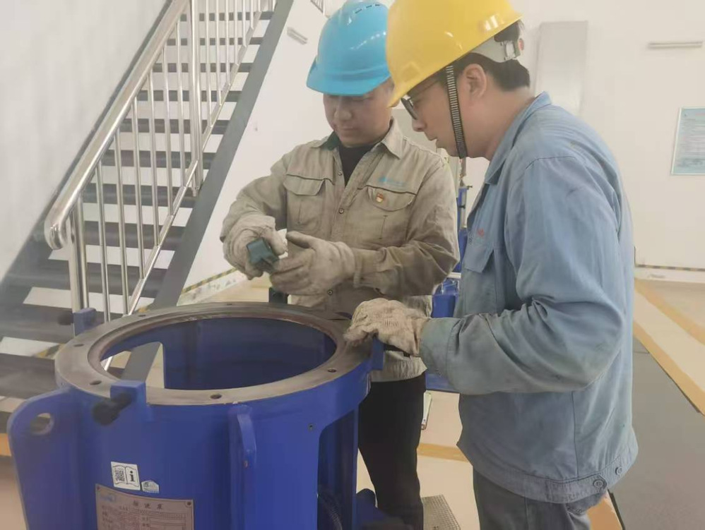 2025年4月初,湖西水廠碳濾池2號(hào)提升泵突發(fā)劇烈振動(dòng)故障。朱俊率領(lǐng)應(yīng)急搶修組立刻馳援,驅(qū)車百余公里抵達(dá)現(xiàn)場(chǎng)后,運(yùn)用水平儀開展全面動(dòng)態(tài)檢測(cè)分析,結(jié)合多年技術(shù)經(jīng)驗(yàn)鎖定設(shè)備隱患點(diǎn)。經(jīng)3天連續(xù)高強(qiáng)度作業(yè),成功實(shí)施基礎(chǔ)加固與動(dòng)平衡校正,避免了一起重大停水事故,保障了片區(qū)內(nèi)居民用水安全。