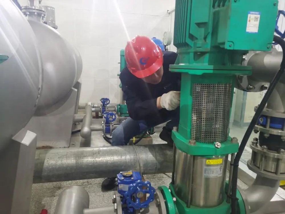 拆卸過程中,技術人員面臨安裝位置狹窄、操作空間有限等問題,但他們毫不退縮,憑借精湛技術及頑強毅力,順利完成故障電機拆卸工作。故障電機運抵修理車間后,技術人員爭分奪秒更換新軸承,并連續(xù)奮戰(zhàn)24小時完成維修,隨后對2號水泵葉輪等關鍵部件進行全面調(diào)試。最終,2號水泵恢復平穩(wěn)運轉(zhuǎn),清澈水流重新輸送至文昌府居民家中。