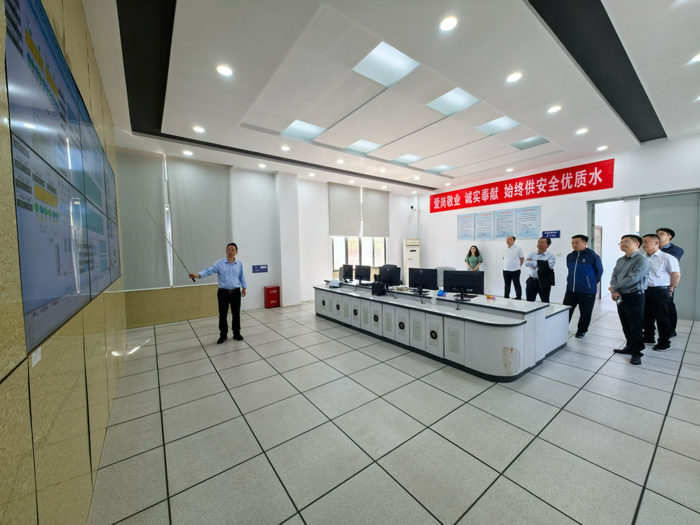 在檢查過程中,市住建局領(lǐng)導(dǎo)實(shí)地走訪了中控室、制水車間等核心生產(chǎn)區(qū)域,詳細(xì)聽取了第一水廠負(fù)責(zé)人關(guān)于水廠生產(chǎn)工藝、設(shè)備運(yùn)行管理及水質(zhì)保障措施的匯報(bào)。在中控室,檢查組通過實(shí)時(shí)監(jiān)控系統(tǒng)了解了供水調(diào)度、水質(zhì)監(jiān)測等關(guān)鍵環(huán)節(jié)的運(yùn)行情況,并對(duì)智能化管控體系給予充分肯定。在制水車間,市住建局領(lǐng)導(dǎo)重點(diǎn)查看了臭氧投加、深度處理、消毒系統(tǒng)等工藝段,仔細(xì)詢問了節(jié)日期間設(shè)備維護(hù)、應(yīng)急保障及水質(zhì)檢測頻次等具體工作,強(qiáng)調(diào)要確保工藝全流程安全可控。