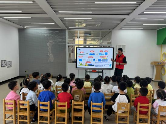 活動(dòng)現(xiàn)場(chǎng),揚(yáng)州中法環(huán)境工作人員化身為“節(jié)水小老師”,用生動(dòng)有趣的語(yǔ)言和形象的動(dòng)畫(huà)視頻,為孩子們講解一滴水從水源地到水龍頭的奇妙旅程,讓孩子們直觀地了解到水資源的來(lái)之不易。
