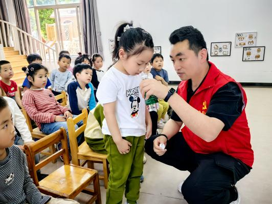 在互動(dòng)環(huán)節(jié),“節(jié)水小老師”精心設(shè)計(jì)了“水滴大冒險(xiǎn)”趣味問(wèn)答游戲。“洗手時(shí)怎么用水最???”“魚(yú)缸換出來(lái)的水還能做什么?”隨著一個(gè)個(gè)有趣的問(wèn)題拋出,孩子們紛紛舉起小手,搶著回答。答對(duì)問(wèn)題的小朋友則獲得印有節(jié)水卡通圖案的小貼紙,貼在“節(jié)水小達(dá)人” 榮譽(yù)墻上。