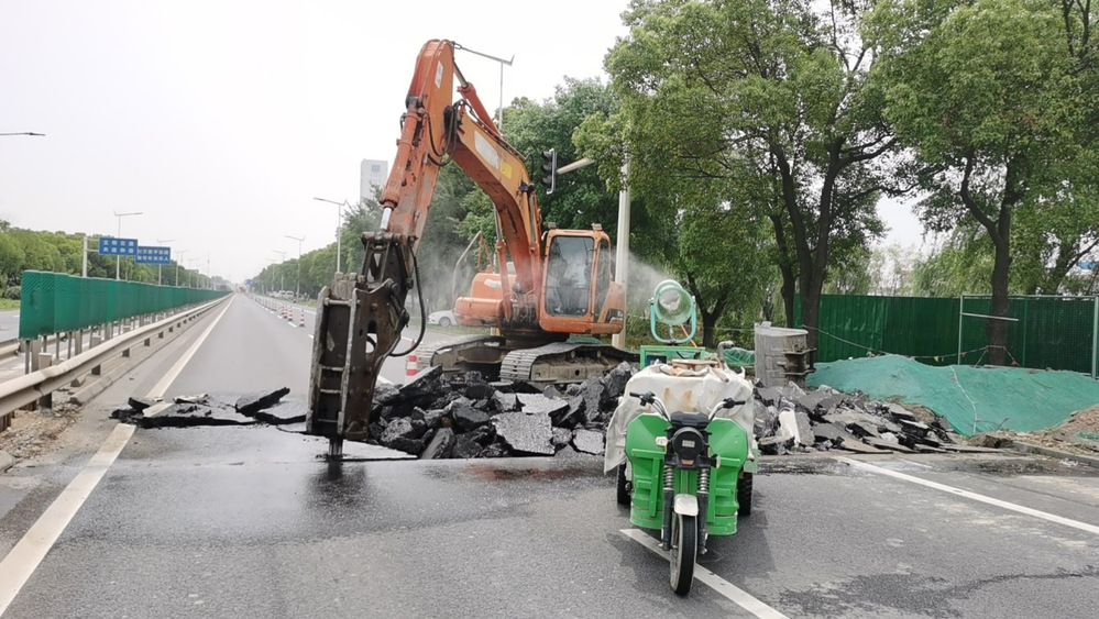 施工現(xiàn)場劃分為南北兩階段,采用“日間備料、夜間突擊”模式,履帶式破碎機對原路面分層切割破除后,同步啟動鋼板樁支護,施工人員輪班施工作業(yè)。面對溝槽深度近4米、毗鄰?fù)ㄐ熊嚨赖蕊L(fēng)險,安全員全程旁站監(jiān)督,每30分鐘巡查支護結(jié)構(gòu)穩(wěn)定性。