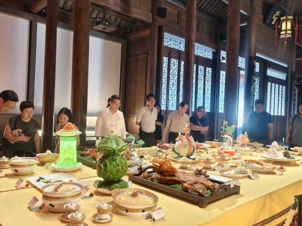 莫清一行首先了解了街區(qū)的地域特點、業(yè)態(tài)布局以及街區(qū)提改升級的理念等基本情況;隨后,參觀了淮揚菜博物館、唐朝詭事錄VR劇場;還在街區(qū)的美食市集體驗了揚州獅子頭、揚州炒飯等經(jīng)典美食的制作。
