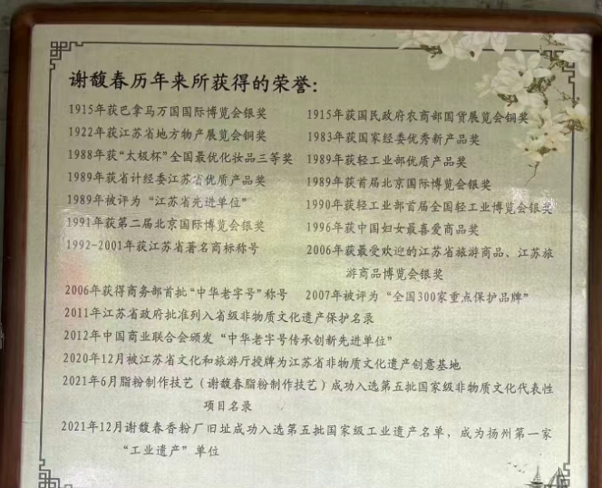 馥園深處,謝箴齋先生的書(shū)房猶存墨香。案頭那本泛黃的賬冊(cè),記載著民國(guó)初年的黃金歲月:梳頭油日銷百瓶,鵝蛋粉供不應(yīng)求,連上海灘的名媛都托人捎帶??少~冊(cè)里也藏著戰(zhàn)火的灰燼,抗戰(zhàn)時(shí)期的某頁(yè),墨跡忽然洇開(kāi),像是淚水浸透了紙背——那是謝家人守著作坊,在敵機(jī)轟鳴中堅(jiān)持手作的印記。記得1915年巴拿馬萬(wàn)國(guó)博覽會(huì)上,當(dāng)謝馥春的香粉盒被輕輕揭開(kāi),銀質(zhì)的獎(jiǎng)?wù)略诋悋?guó)他鄉(xiāng)的燈光下閃爍,那是中國(guó)美妝第一次以東方神韻征服世界的時(shí)刻。這一榮譽(yù)不僅奠定了謝馥春的國(guó)際品牌地位,也為中國(guó)化妝品行業(yè)爭(zhēng)得了榮譽(yù)。