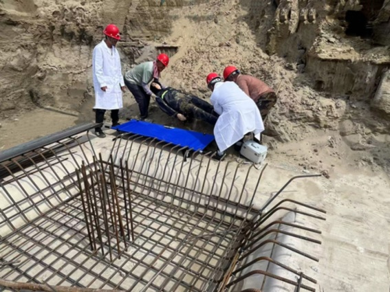此次應(yīng)急演練模擬施工現(xiàn)場(chǎng)塔吊基坑邊坡因連續(xù)降雨出現(xiàn)局部坍塌,1名工人被困,周邊土體存在繼續(xù)滑移的風(fēng)險(xiǎn)等情形。演練活動(dòng)涉及應(yīng)急隊(duì)伍集結(jié)、受傷人員醫(yī)療救護(hù)、工程應(yīng)急處置搶險(xiǎn)等多個(gè)環(huán)節(jié)?,F(xiàn)場(chǎng)總指揮收到救援消息后,立即啟動(dòng)應(yīng)急救援預(yù)案。各小組響應(yīng)迅速、職責(zé)明確,警戒組及時(shí)封鎖現(xiàn)場(chǎng);救援組進(jìn)行隱患排查,制定支護(hù)方案并對(duì)基坑周邊進(jìn)行加固,防止邊坡發(fā)生二次坍塌;醫(yī)療救護(hù)組開展救援,對(duì)傷者進(jìn)行包扎檢查,并將傷者送至路邊等待救護(hù)車到場(chǎng)送至醫(yī)院。在各小組的密切配合下,在全體演練人員的共同努力下,演練取得圓滿成功。