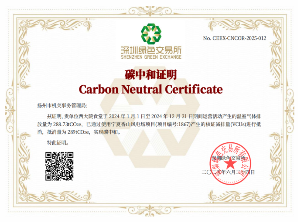 近日,由能源集團(tuán)攜手機(jī)關(guān)事務(wù)局共同打造的全省首個機(jī)關(guān)零碳食堂項(xiàng)目順利投運(yùn),該項(xiàng)目位于揚(yáng)州市政府西大院食堂,采用“光伏+碳匯+數(shù)字能源調(diào)度”綜合用能方式,即通過樓頂分布式光伏發(fā)電供應(yīng)“綠電”,結(jié)合購買碳匯抵消剩余排放,最終實(shí)現(xiàn)食堂運(yùn)營碳中和。2024年西大院食堂運(yùn)營全年產(chǎn)生溫室氣體排放量288.73噸,能源集團(tuán)提供充分技術(shù)支持,通過碳匯抵消,實(shí)現(xiàn)了從能源供給到終端消費(fèi)的全鏈條減排,并獲得了深圳綠色交易所碳中和認(rèn)證。當(dāng)“光盤行動”遇上“綠電革命”,零碳食堂不僅是公共機(jī)構(gòu)主動領(lǐng)跑,率先推動綠色減排的務(wù)實(shí)舉措,更是政企合作共探區(qū)域綠色低碳轉(zhuǎn)型的生動實(shí)踐。