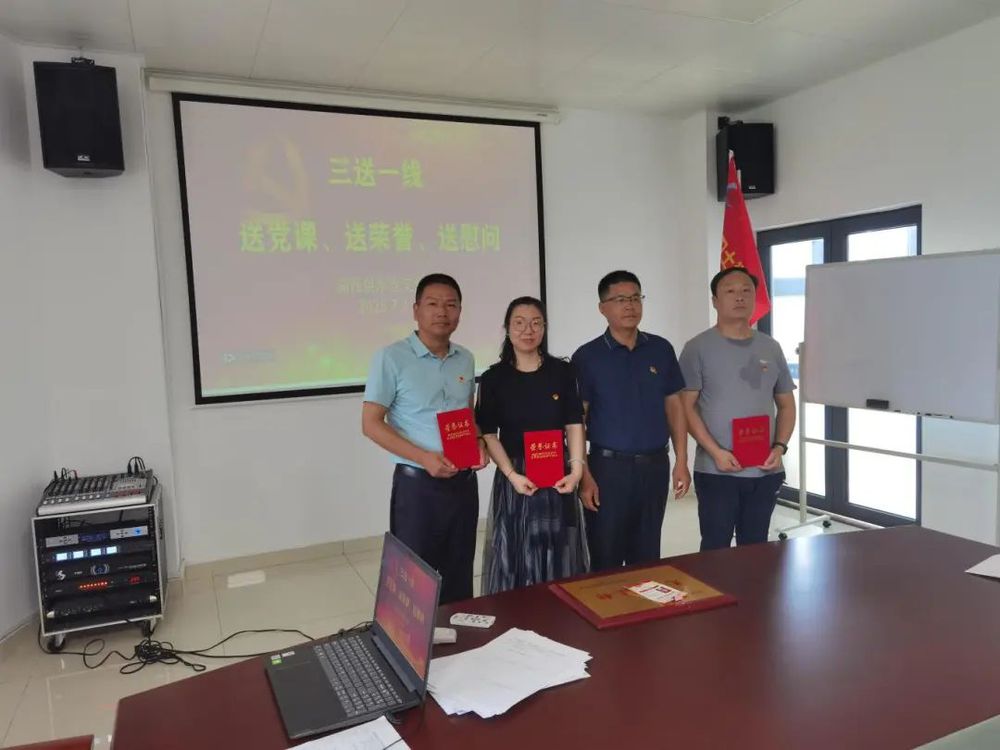 “七一”期間公司領(lǐng)導(dǎo)班子分赴各支部,為25名“優(yōu)秀共產(chǎn)黨員”、8名“優(yōu)秀黨務(wù)工作者”、3個“先進(jìn)黨支部”頒發(fā)榮譽(yù)獎牌和證書并向他們表示祝賀,獲獎的同志表示這份沉甸甸的榮譽(yù)既是對自己工作的肯定,更是鞭策,一定會珍惜榮譽(yù)、再接再厲,力爭再創(chuàng)佳績,再立新功。獲獎支部表示除了一如既往做好本職工作,還會充分發(fā)揮黨組織的戰(zhàn)斗堡壘作用和先進(jìn)支部的模范引領(lǐng)作用,盡職盡責(zé)為供水事業(yè)貢獻(xiàn)力量!
