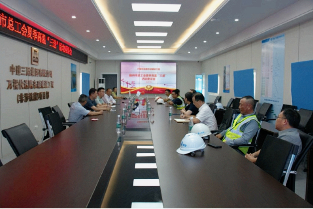 現(xiàn)場慰問結束后,市總工會還組織開展了夏季高溫“三送”活動座談會。會上,項目部就工程進展、安全生產(chǎn)及高溫防護措施落實情況等進行了詳細匯報。孫凌雷在聽取匯報后充分肯定了工程建設所取得的成績。他指出,萬福快速路東延建設工程項目是重大民生工程,廣大建設者們以高度的責任感、使命感堅守崗位,這種奉獻精神令人動容。他強調(diào),項目部要加強安全作業(yè)和防暑降溫知識的宣傳普及,提高施工人員的自我保護意識和能力;要嚴格落實高溫作業(yè)預案,科學調(diào)整作業(yè)時間,配足防暑降溫設施,堅決守住勞動者健康生命線。