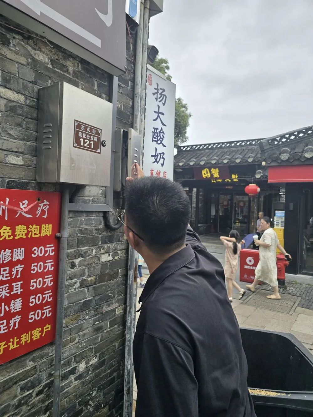 上午9點(diǎn),商戶們紛紛打開空調(diào),街區(qū)瞬時(shí)用電負(fù)荷達(dá)到峰值。王姐,您這后廚的插線板都發(fā)燙了!在老字號藕粉圓子,魯毅蹲在墻角,用測溫槍掃描著老式插線板——38.6℃的紅色數(shù)字在屏幕上跳動。上周臺風(fēng)導(dǎo)致電壓波動,您這線路老化得徹底換了。他掏出手機(jī)調(diào)出維修隊(duì)排期表,當(dāng)場幫商戶預(yù)約了電工。臨走時(shí)還不忘交代商戶:“高溫天電器就像人一樣會‘中暑’,必須定時(shí)檢查?!边呎f邊在商戶群里推送《高溫用電十誡》。