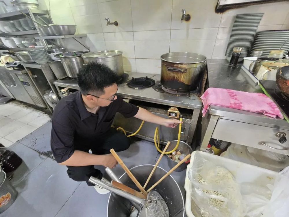 上午7點(diǎn),東關(guān)街的晨光剛剛漫過青磚墻,安全員魯毅便已穿上工作服,開始了一天的工作。他首先來到街區(qū)東側(cè)的餐飲商鋪聚集區(qū),手持測溫儀檢查后廚用電情況。“王叔,這根軟管用了三年了吧?臺風(fēng)天風(fēng)大,咱們換個(gè)防爆管更安心。”魯毅邊說邊聯(lián)系燃?xì)夤竟ぷ魅藛T上門更換新管,不到一小時(shí)便完成更換。這是他今日處理的第3起燃?xì)怆[患。