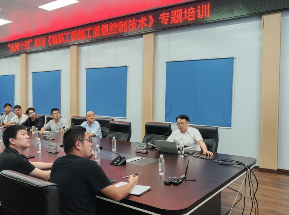 主講人以“路基工程施工質量控制技術”為題,引用路基工程施工真實案例,從施工準備、施工流程、施工要點,到常見施工問題及建議,細致而全面地講解了改良土路基施工和雙向攪拌樁路基施工的技術工藝及質量控制,培訓內(nèi)容兼具技術性、針對性和可操作性,為“運河十里”項目后續(xù)建設工作打下堅實基礎。