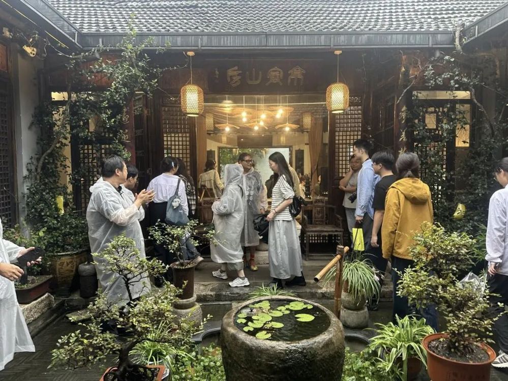 調(diào)研過程中,各國(guó)師生們還在剪刀巷的左琴右書文化空間內(nèi),沉浸式體驗(yàn)了《春江花月夜》《好一朵茉莉花》等傳統(tǒng)樂器演奏與詩(shī)詞朗誦,切身感受揚(yáng)州深厚的文化底蘊(yùn)。這個(gè)由本地居民利用傳統(tǒng)民居院落及舊倉(cāng)庫(kù)改造而成的文化空間,曲徑通幽,成為古城中一處活化的文化陣地。參加考察的師生紛紛表示,通過實(shí)地走訪,他們深入了解了揚(yáng)州將古民居創(chuàng)造性轉(zhuǎn)化為園林的獨(dú)特經(jīng)驗(yàn)。