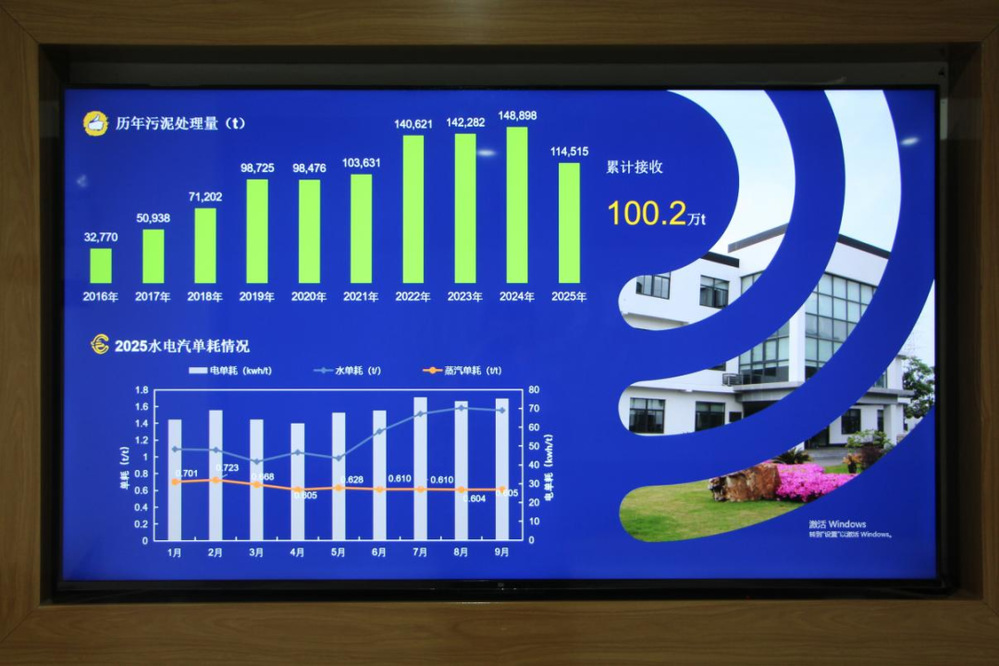 在工藝管控與環(huán)保達(dá)標(biāo)層面,企業(yè)搭建全流程智能監(jiān)測體系:污泥進(jìn)場時,通過自動采樣設(shè)備檢測金屬、有機(jī)物含量,杜絕不合格污泥入場;干化過程中,中控系統(tǒng)實(shí)時監(jiān)控溫度、濕度、蒸汽壓力等十余項(xiàng)關(guān)鍵參數(shù),偏差超限時自動報警調(diào)整,通過精細(xì)化管理,企業(yè)當(dāng)前蒸汽單耗較設(shè)計值下降32%,用電單耗較設(shè)計值下降15%,均處于行業(yè)領(lǐng)先水平;尾水、廢氣排放均遠(yuǎn)低于國家排放標(biāo)準(zhǔn),十年來污染物排放合格率始終保持100%,真正實(shí)現(xiàn)“安全處置、環(huán)保達(dá)標(biāo)、資源循環(huán)”的技術(shù)閉環(huán)。